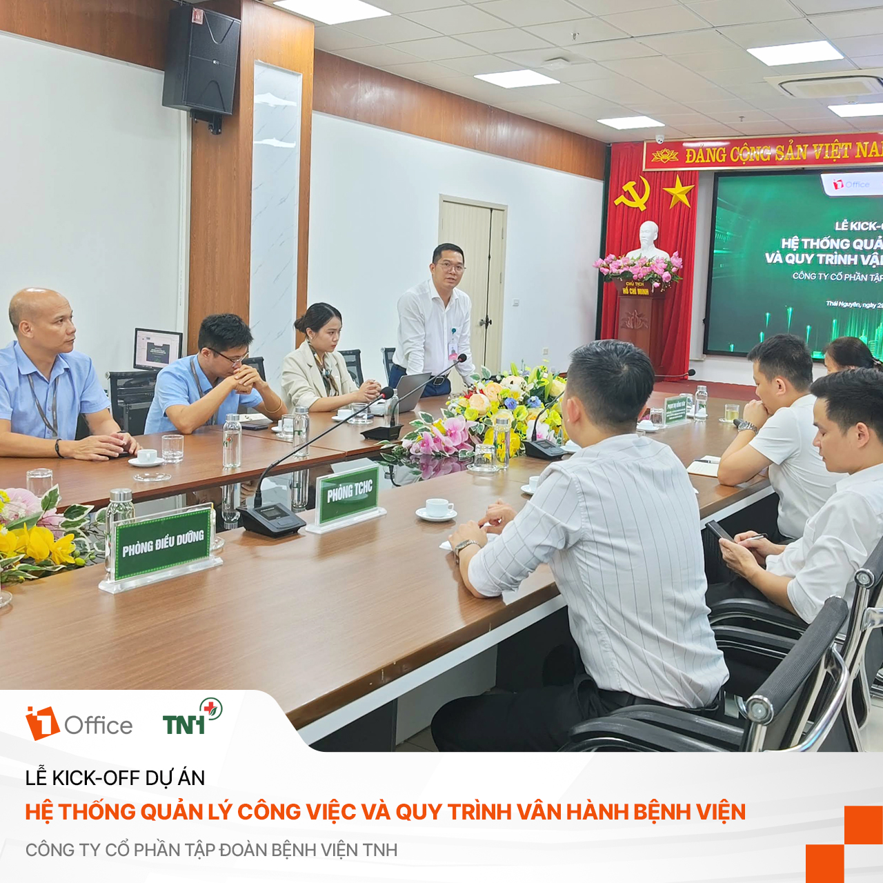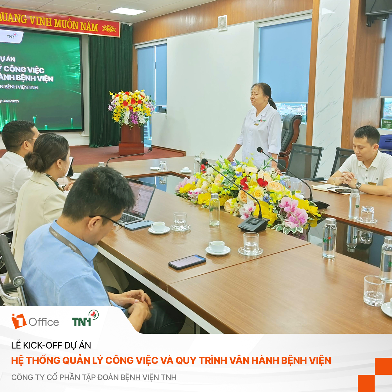 Ngày 29/5/2025, TNH phối hợp cùng1Office tổ chức lễ kick-off triển khai nền tảng quản trị tổng thể 1Office. Buổi lễ có sự tham dự của PGS.TS.BS Phạm Thị Hồng Vân – Giám đốc Bệnh viện TNH, ông Vũ Thạch Hiền Giang – Phó Giám đốc Viettel Thái Nguyên và chị Lương Thị Ngọc Ánh – Đại diện Công ty Cổ phần 1Office. Sự kiện đánh dấu bước tiến quan trọng trong hành trình chuyển đổi số toàn diện của hệ thống bệnh viện.