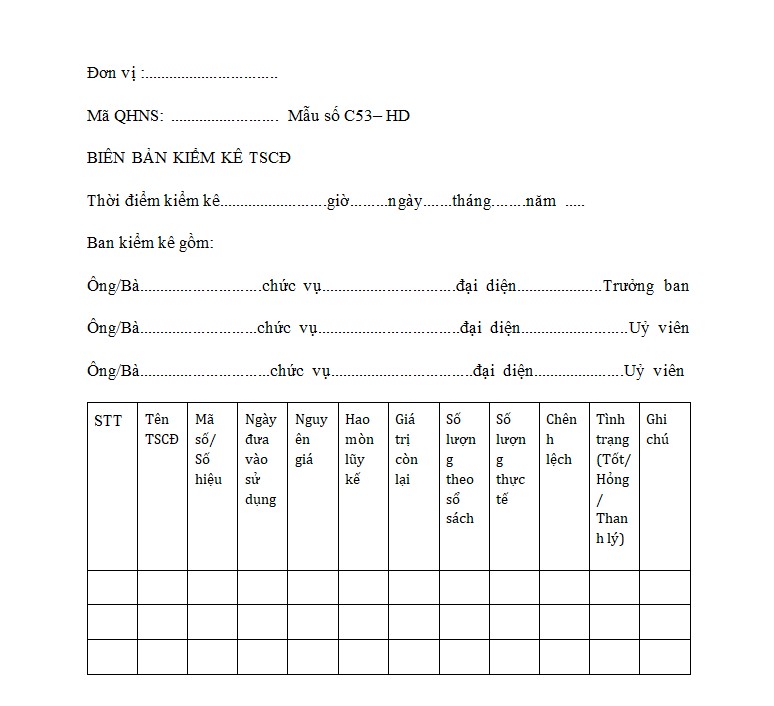 4.4 Mẫu biên bản kiểm kê tài sản cố định