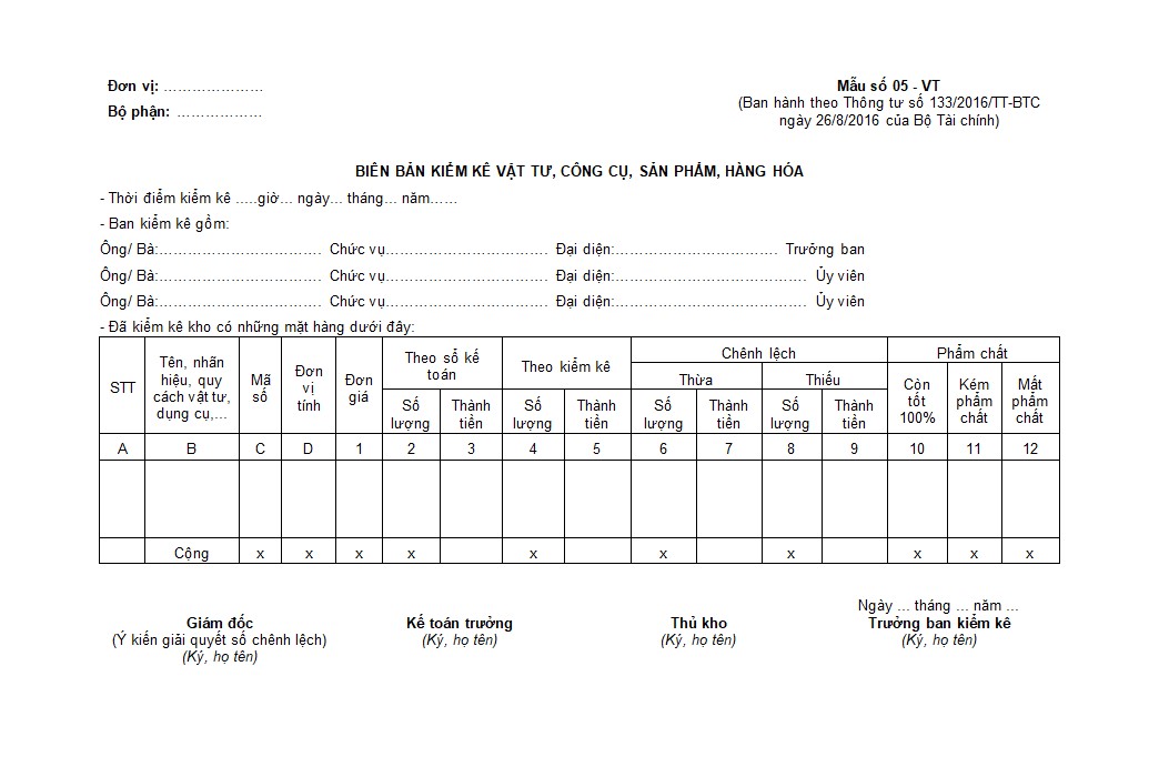 - Đảm bảo tính minh bạch: Yêu cầu kiểm kê đúng mẫu theo thông tư (200/2014, 133/2016), không tự ý thay đổi hoặc lược bỏ nội dung.