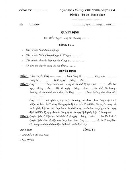 Điều chuyển công tác là một việc tuy xảy ra ít thường xuyên nhưng không tránh khỏi của doanh nghiệp trong quá trình hoạt động.