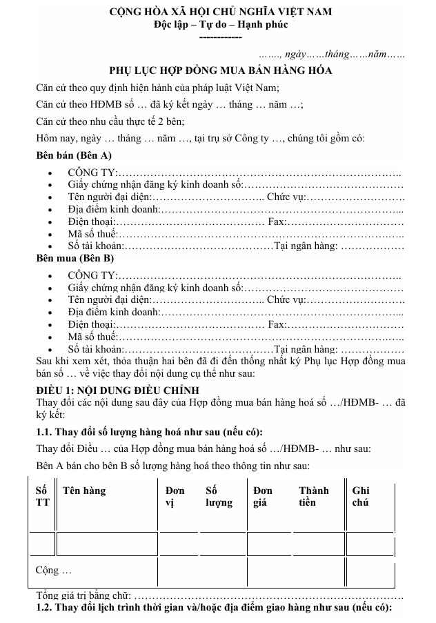 - 3.3. Mẫu phụ lục hợp đồng mua bán