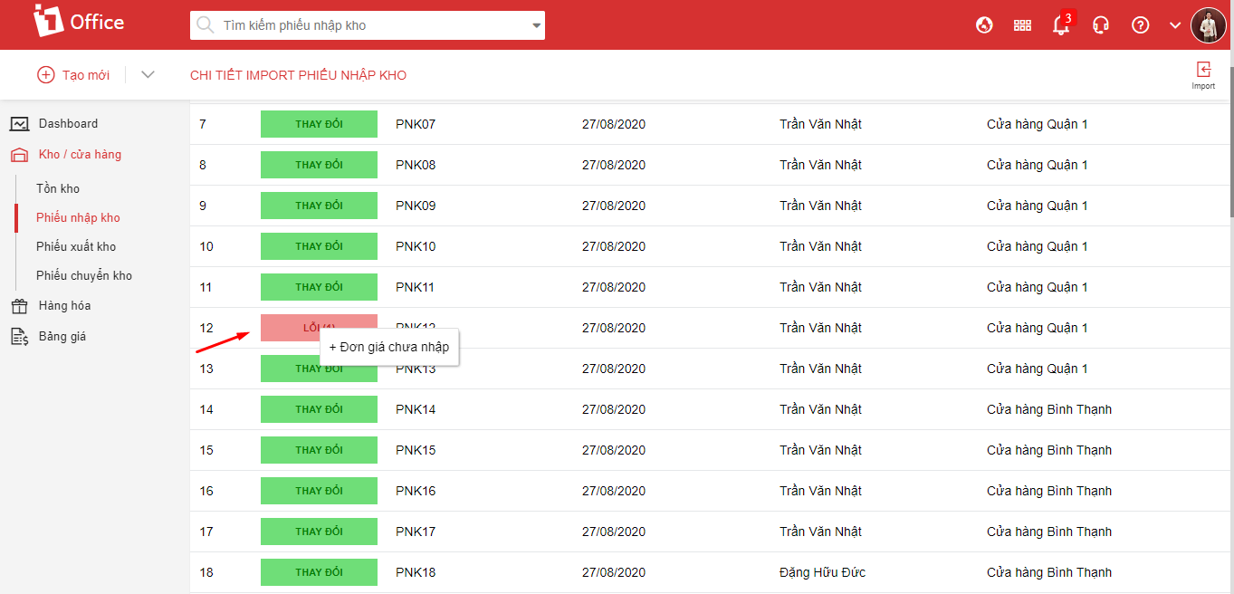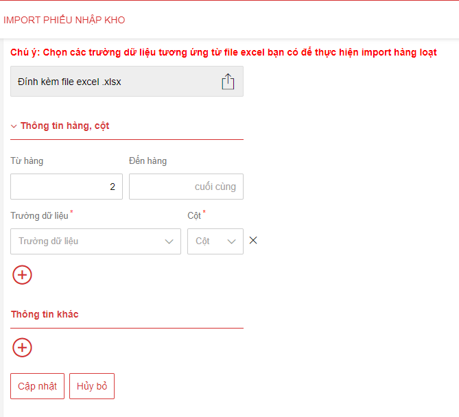 Import là cách để thêm mới nhiều đối tượng phiếu nhập kho trong một lần cập nhật. Cách này được sử dụng để cập nhật số lượng nhiều phiếu nhập. Cụ thể: