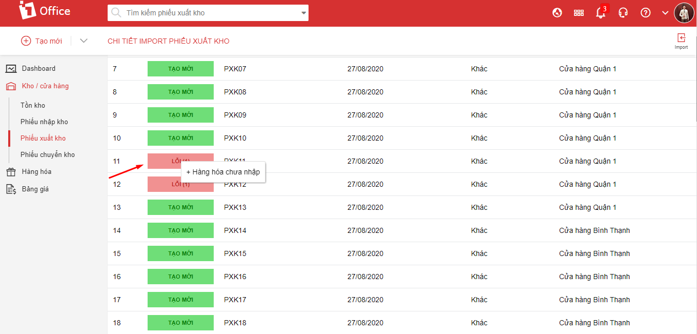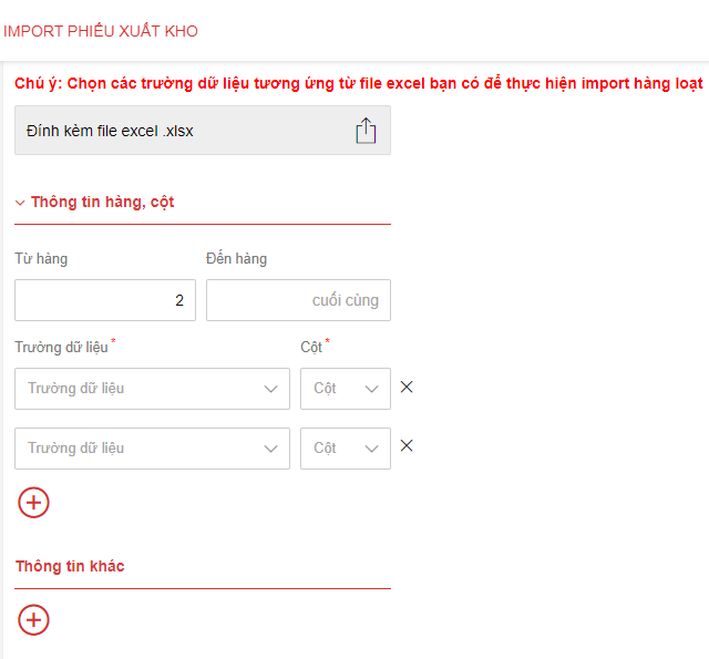 Import là cách để thêm mới nhiều đối tượng phiếu xuất kho trong một lần cập nhật. Cách này được sử dụng để cập nhật số lượng nhiều phiếu xuất. Cụ thể: