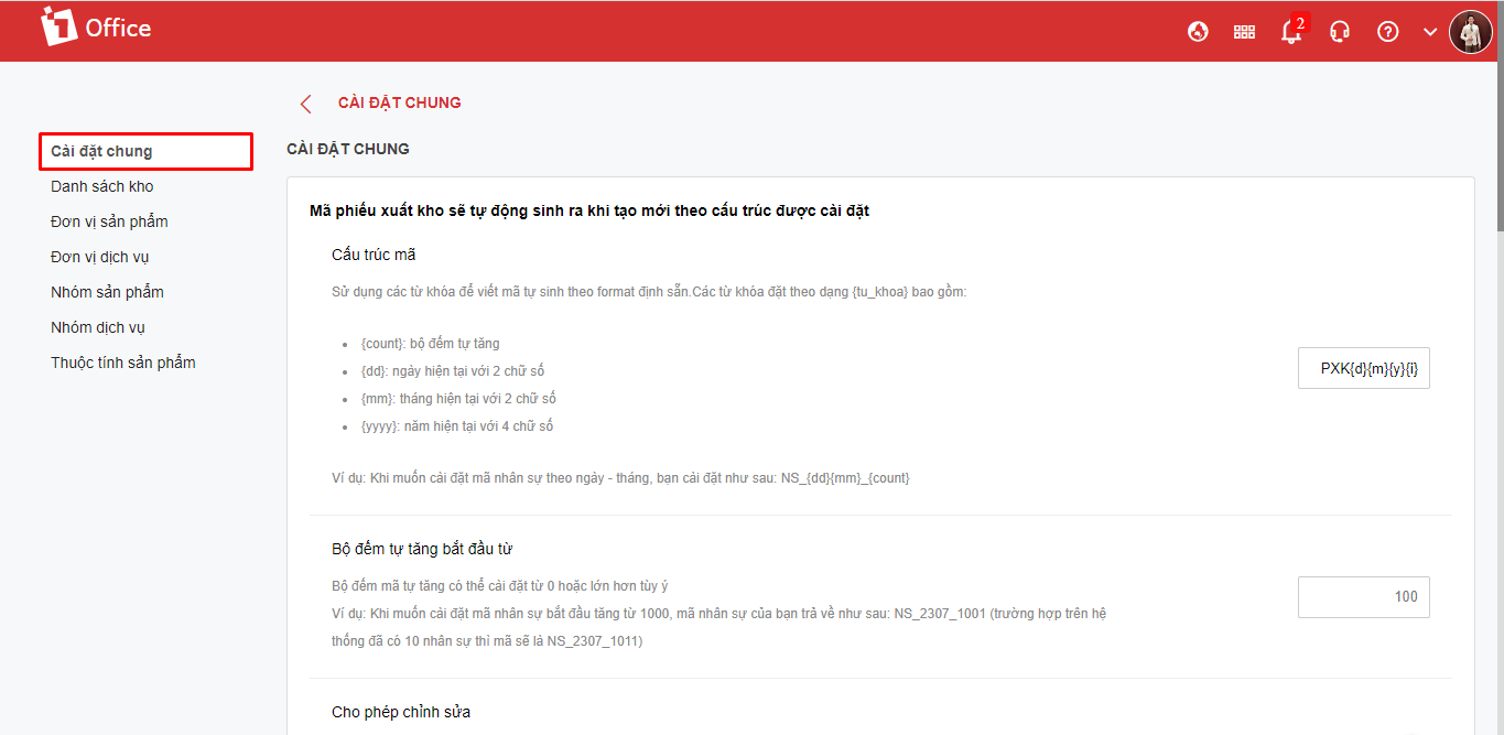 Khi bắt đầu sử dụng kho/cửa hàng, bạn hãy thực hiện những cài đặt trước để ứng dụng có hiệu quả những tiện ích mà quản lý kho/cửa hàng của 1Office mang lại. Để thực hiện cài đặt chung, bạn thao tác theo các bước sau: