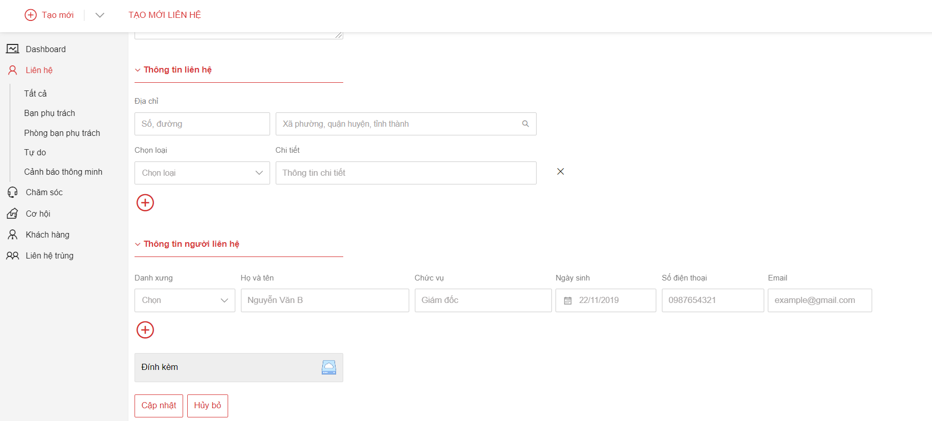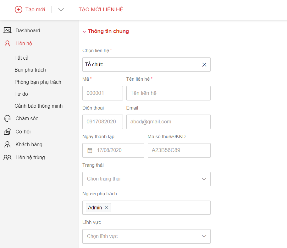 Bước 2. Hướng dẫn tạo mới liên hệ